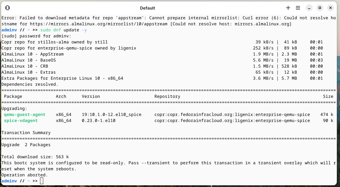 Next up question. When I tried to see if there are any newer updates for the installed software, I am getting errors. Is this something to do with Still-OS being an immutable distro?